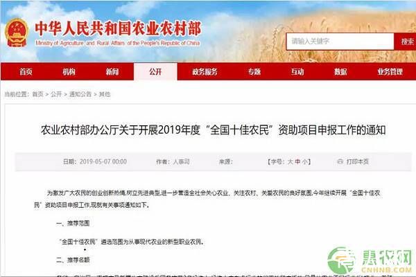 最近农业农村部印发《农业农村部办公厅关于开展2019年度“全国十佳农民”资助项目申报工作的通知》。国家为了让更多的农民朋友有创业创新的热情,特意在2019年继续开展了“全国十佳农民”资助项目申报工作,关注此新闻的朋友或许已经知道被评上的名单了吧,总共有十个人物,那么他们是谁?有什么故事呢?下面我们一起来看看吧!