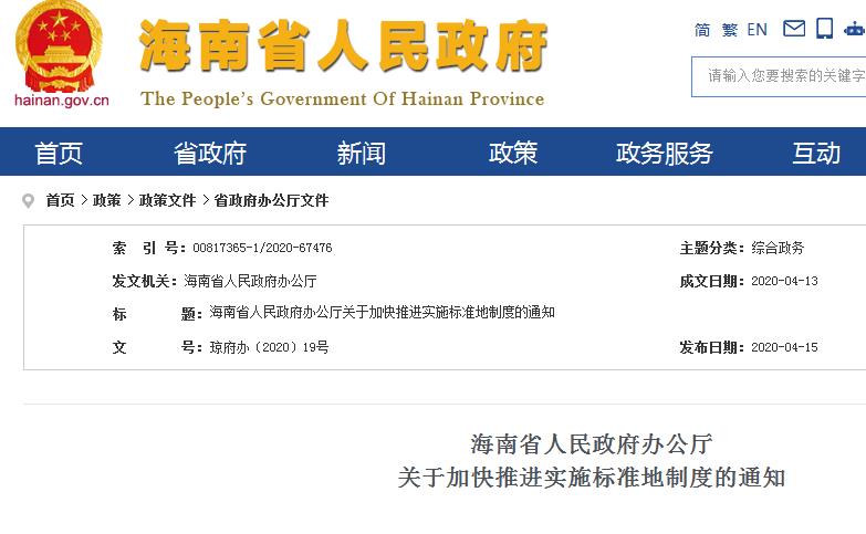 为深入贯彻落实党中央、国务院关于深化“放管服”改革的决策部署,优化营商环境,加快推进海南自贸区(港)产业项目落地,推动经济高质量发展,经省政府同意,现就深化土地资源要素配置制度改革、加快推进实施标准地制度通知如下: