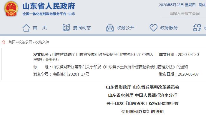 为规范全省水土保持补偿费征收使用管理,加强水青瓜失预防和治理工作,改善生态环境,根据《中华人民共和国水土保持法》《国务院关于印发推进财政资金统筹使用方案的通知》(国发〔2015〕35号)、《财政部 国家发展改革委 水利部 中国人民银行关于印发〈水土保持补偿费征收使用管理办法〉的通知》(财综〔2014〕8号)等有关规定,结合我省实际,我们修订了《山东省水土保持补偿费征收使用管理办法》,现予印发,请遵照执行。