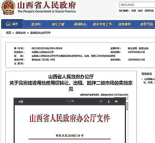 2020年5月13日,山西省人民政府发布《关于完善建设用地使用权转让、出租、抵押二级市场的实施意见》,应该如何解读呢?全文是何内容?