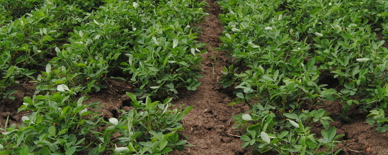 花生处于开花下针期的时候对于养分的需求量会显著增加,此时既要保证花生能够吸收到足够的营养,又要防止植株生长过旺,因此对于肥水条件较好的地块可在初花期亩施25公斤过磷酸钙、10公斤硫酸钾,以达到补充养分、控旺防倒伏、促进荚果发育的目的;对于肥水条件较差、植株瘦弱的地块则可以在初花期亩施7.5-10公斤尿素、30公斤过磷酸钙、10公斤硫酸钾,以满足植株需要的养分和促使有效花的形成,同时为了保证植株不会缺乏微量元素,因此一般还可以亩施2袋“丰洽多保”。当花生进入盛花期之后可对所有的地块进行培土,同时亩施20-30公斤石膏粉(施于结荚层),以促进荚果的发育和减少空壳率、提高饱果率。